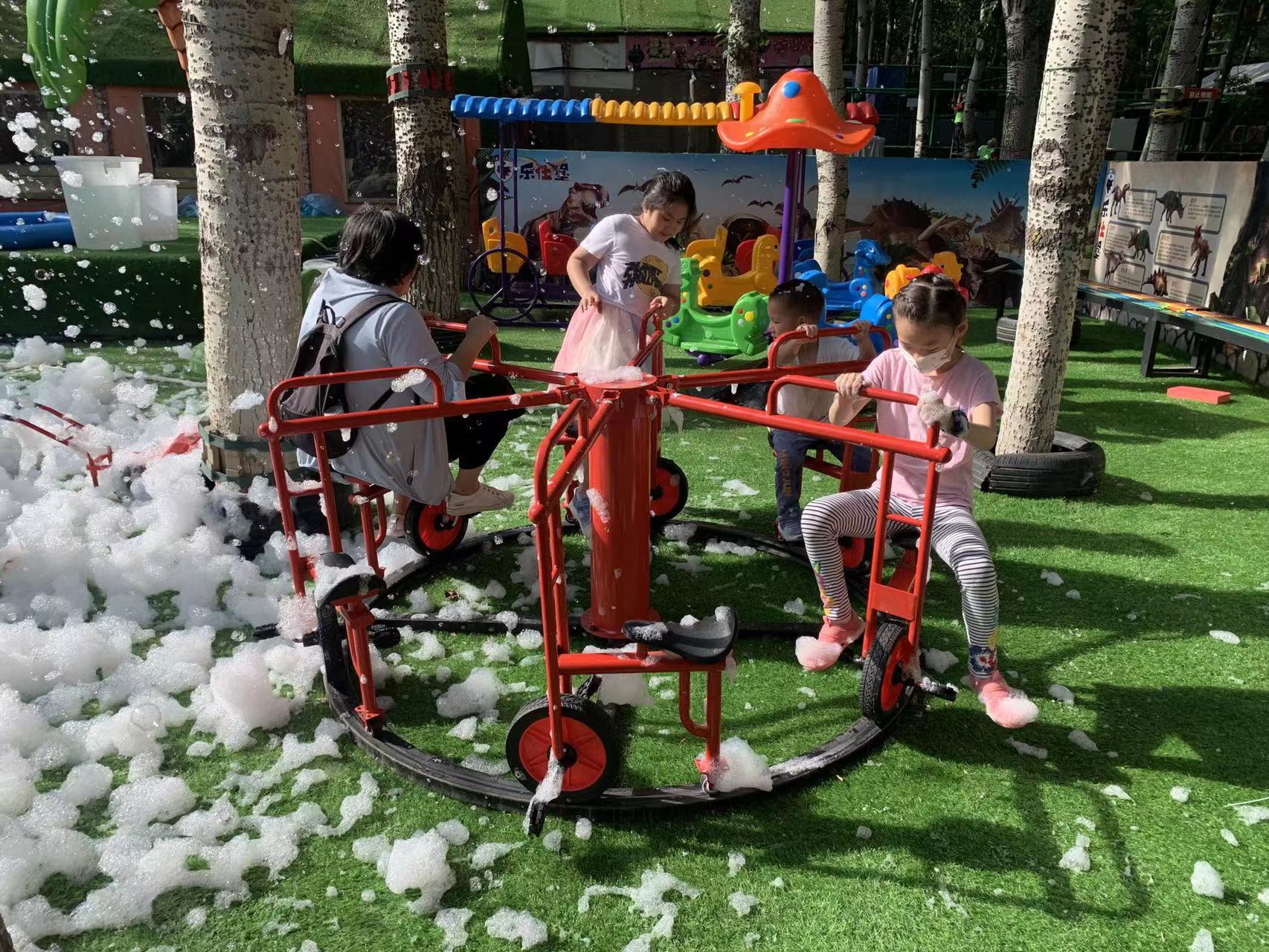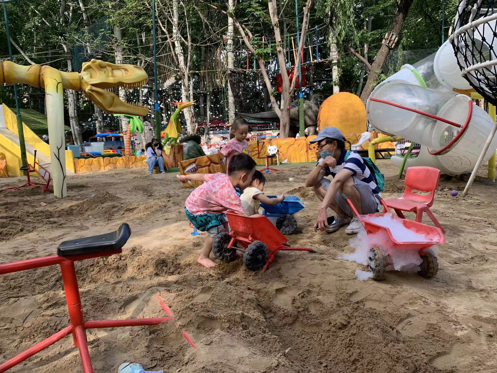 泡泡恐龙乐园提供玩泡泡的工具,孩子们可以直接畅玩,进入恐龙沙滩乐园,现场有沙滩工具,挖掘机,小推车,铲子,进入场地需要脱掉鞋子,可以购买一次性袜子,避免沙子进入鞋里,孩子们不可以在场地扬沙,沙子容易进入眼睛。