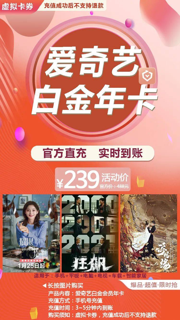 产品内容:爱奇艺白金年卡