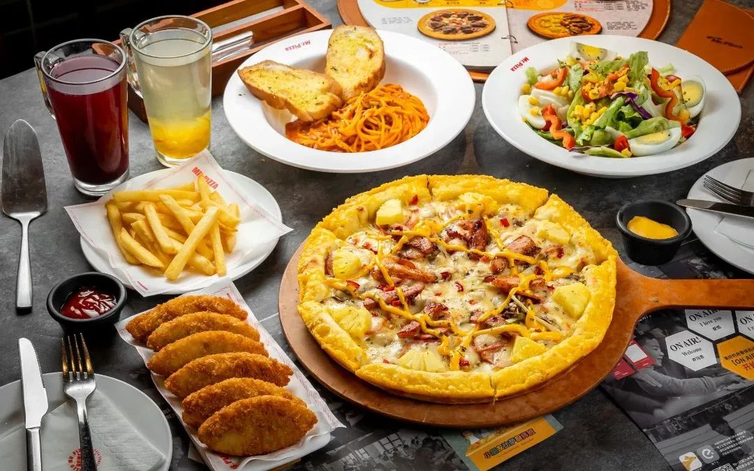 【12英寸黄金饼边披萨】肉香四溢(12英寸黄金饼边披萨) 1份 149元【小吃】深海鳕鱼 1份 22元原味薯条 1份 19元【沙拉】田园蔬菜沙拉 1份 29元【主食】经典肉酱意面 1份 33元【饮品】 蓝莓茶 1份 16元柚子茶 1份 16元