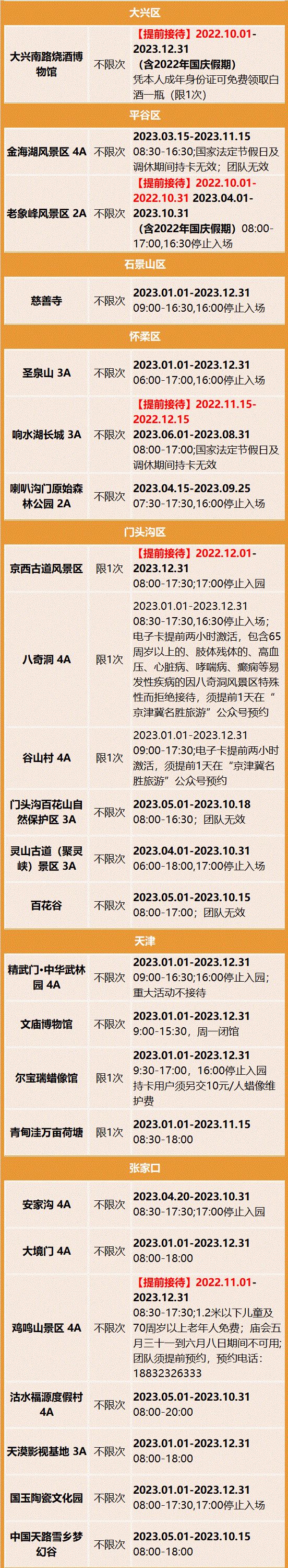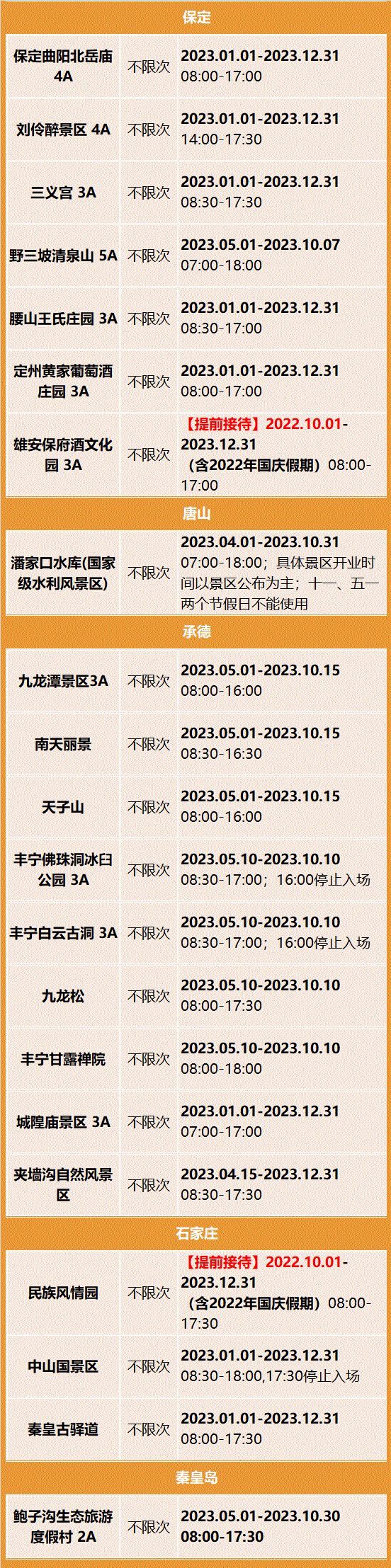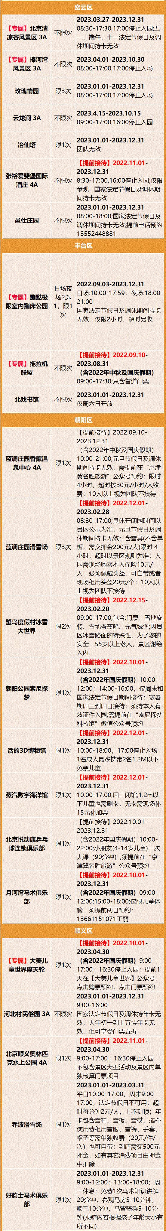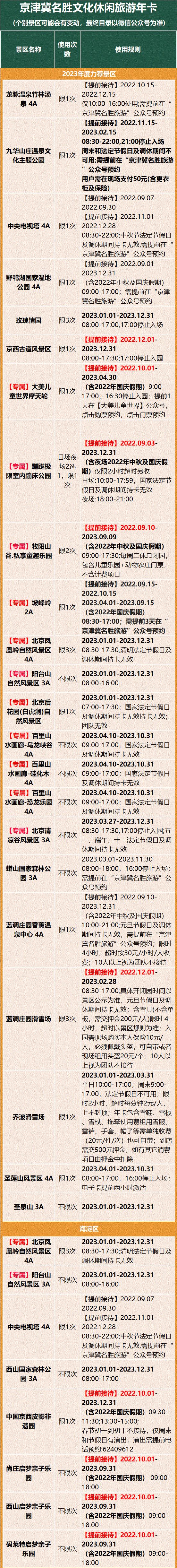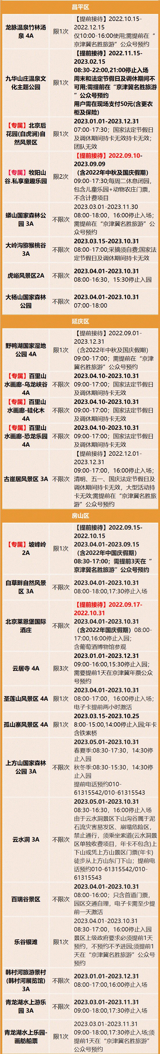 景区接待时间、使用次数不同,出游前详细尽参阅使用手册、官方微信及网站,景区特殊情况不能正常接待以景区公式为准。
