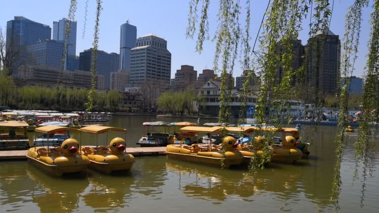 体验精致江南小景船在云中走,人在画中游团结湖公园,游船一小时