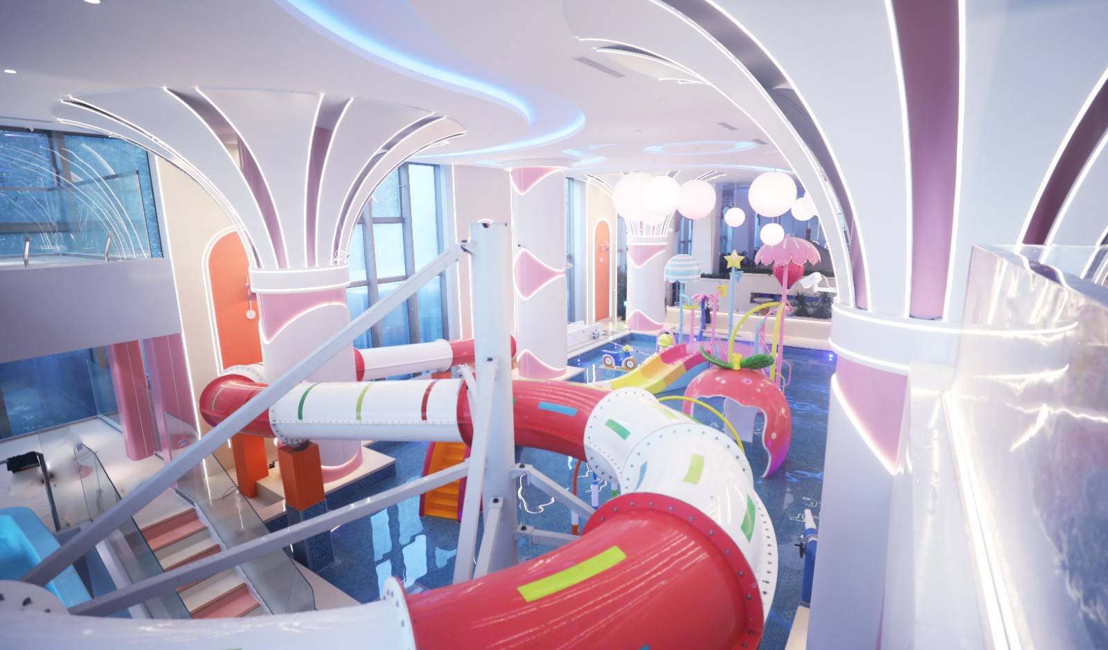 温馨提示:新开嬉水乐园时光隧道滑梯,限1.4米以上,体重180斤以下人群。