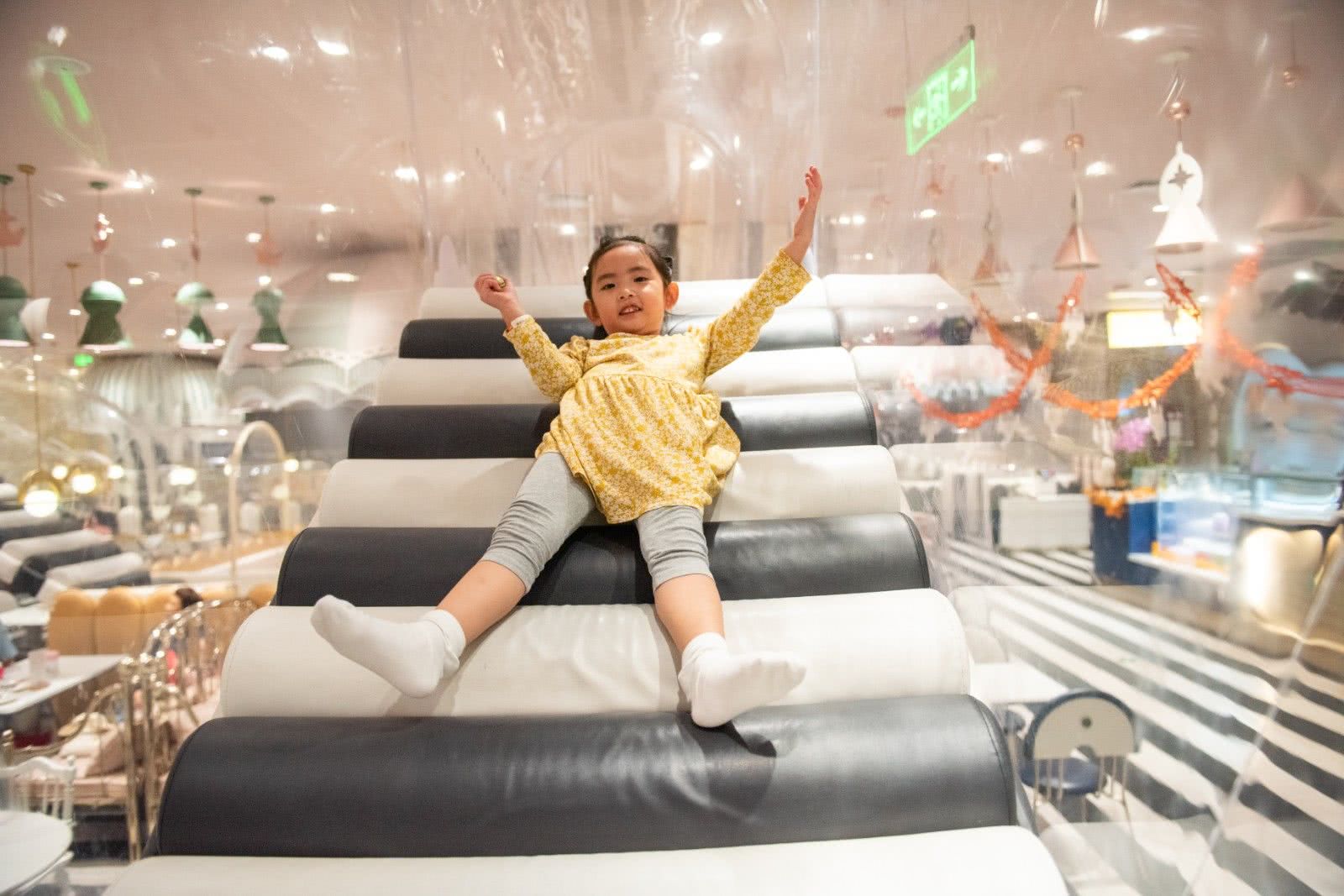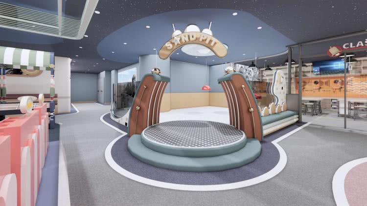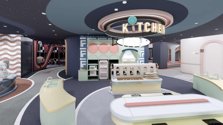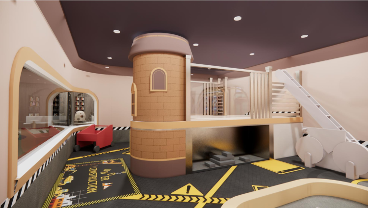 餐厅与游玩区动线融合,小朋友在游玩区玩耍时,家长可以安静享受用餐的闲怡。