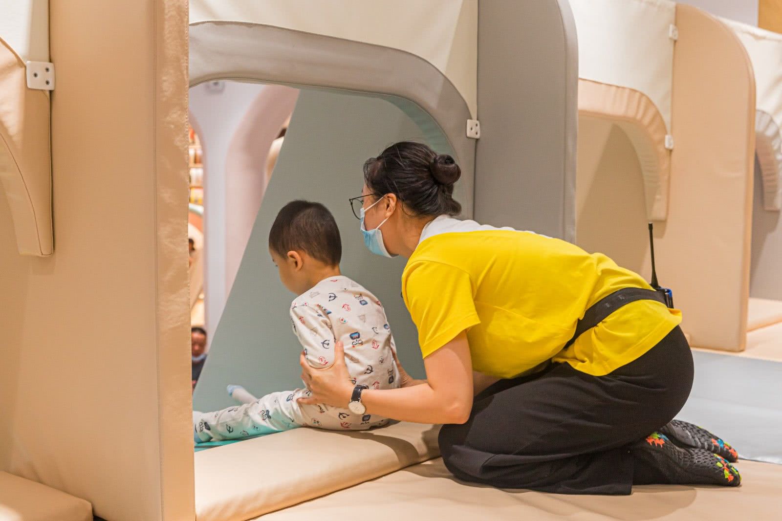 亲妈级别的陪伴式服务是奈尔宝的一直的坚持,奈尔宝每家门店的配备员工高达80-100人。每个服务人员专项专工,她们就像是贴心的好朋友一样,去主动感知小朋友和家长需要,用专业和经验构筑起了奈尔宝管家式的服务体系。