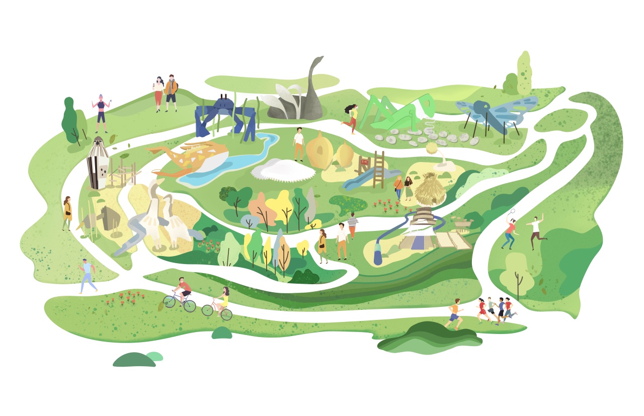 乐园提取了温榆河公园特有的自然生境——湿地、树林、草甸,提取生境里的特有自然元素,划分为花间游乐区、溪间游乐区和林间游乐区三个游玩和体验区域。