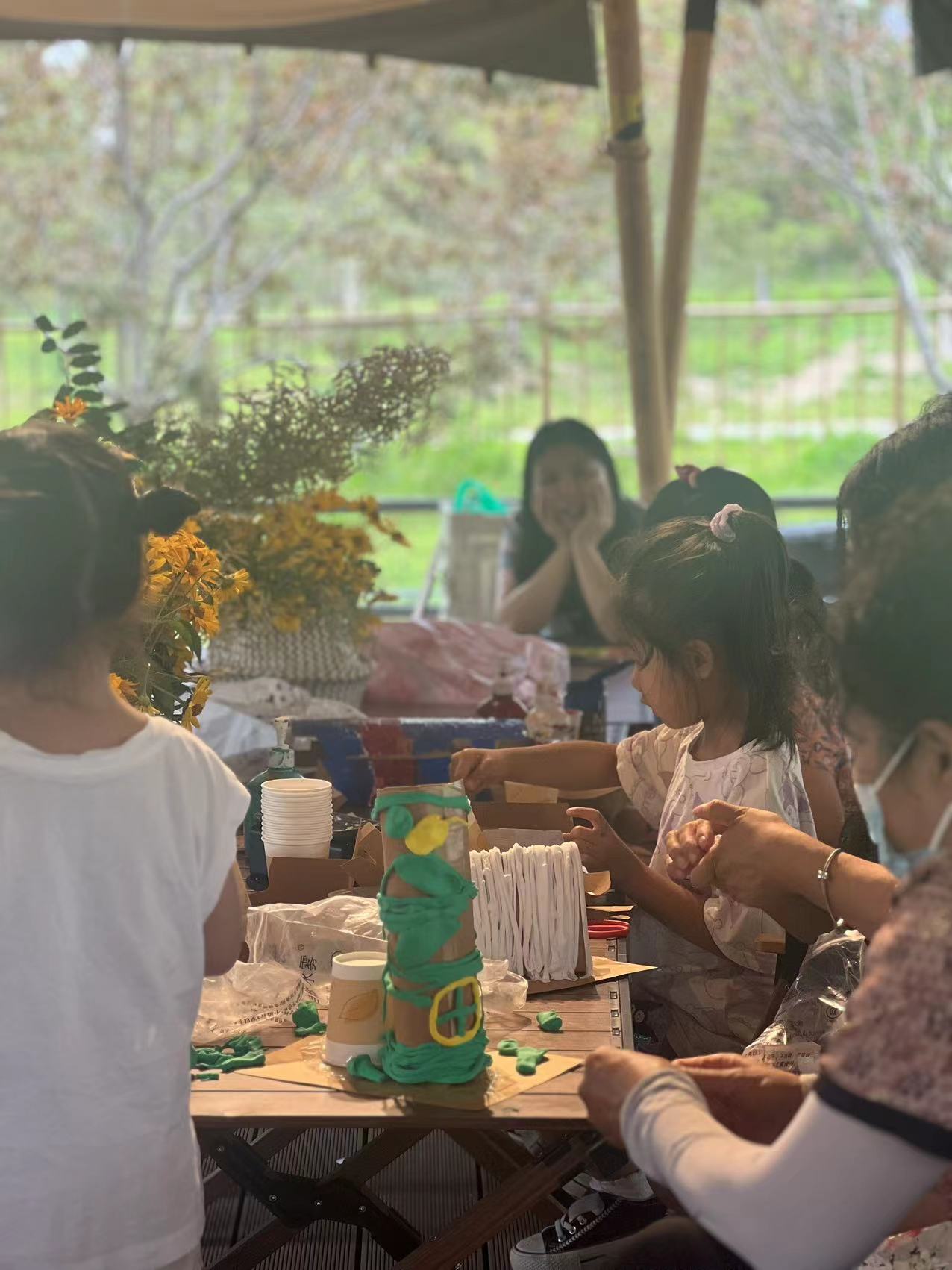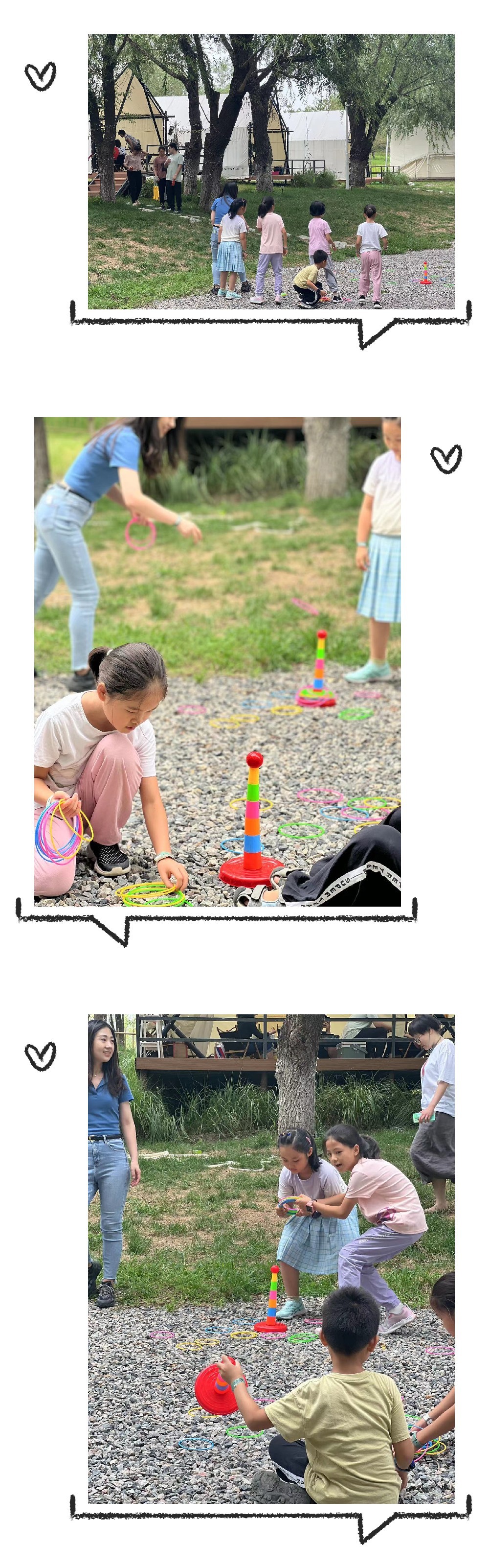 孩子们可以在这无忧无虑的畅玩,扔沙包、套圈圈、做手工等更多好玩的项目。
