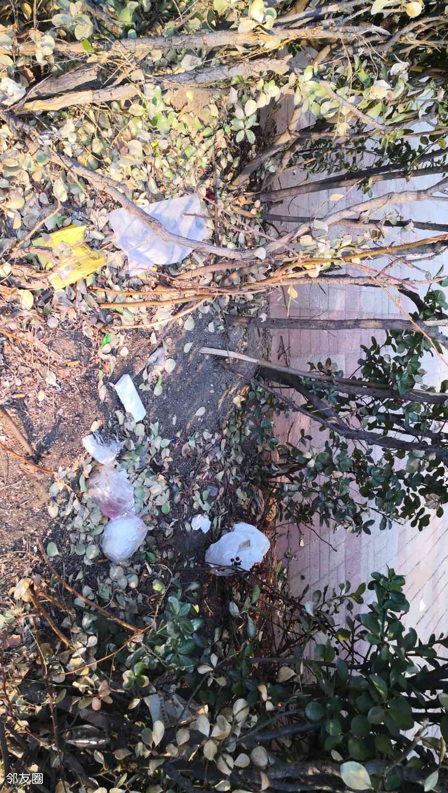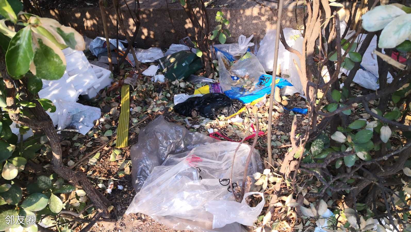 昨天路过这里,实在忍不住要骂人了。西园三区南门外,来故乡超市到国窖1573烟酒店这一段,人行道绿化丛中塞了各种各样的垃圾,塑料袋、编织袋、泡沫箱、捆扎带、口罩、轮胎、饮料杯、纸袋纸片。