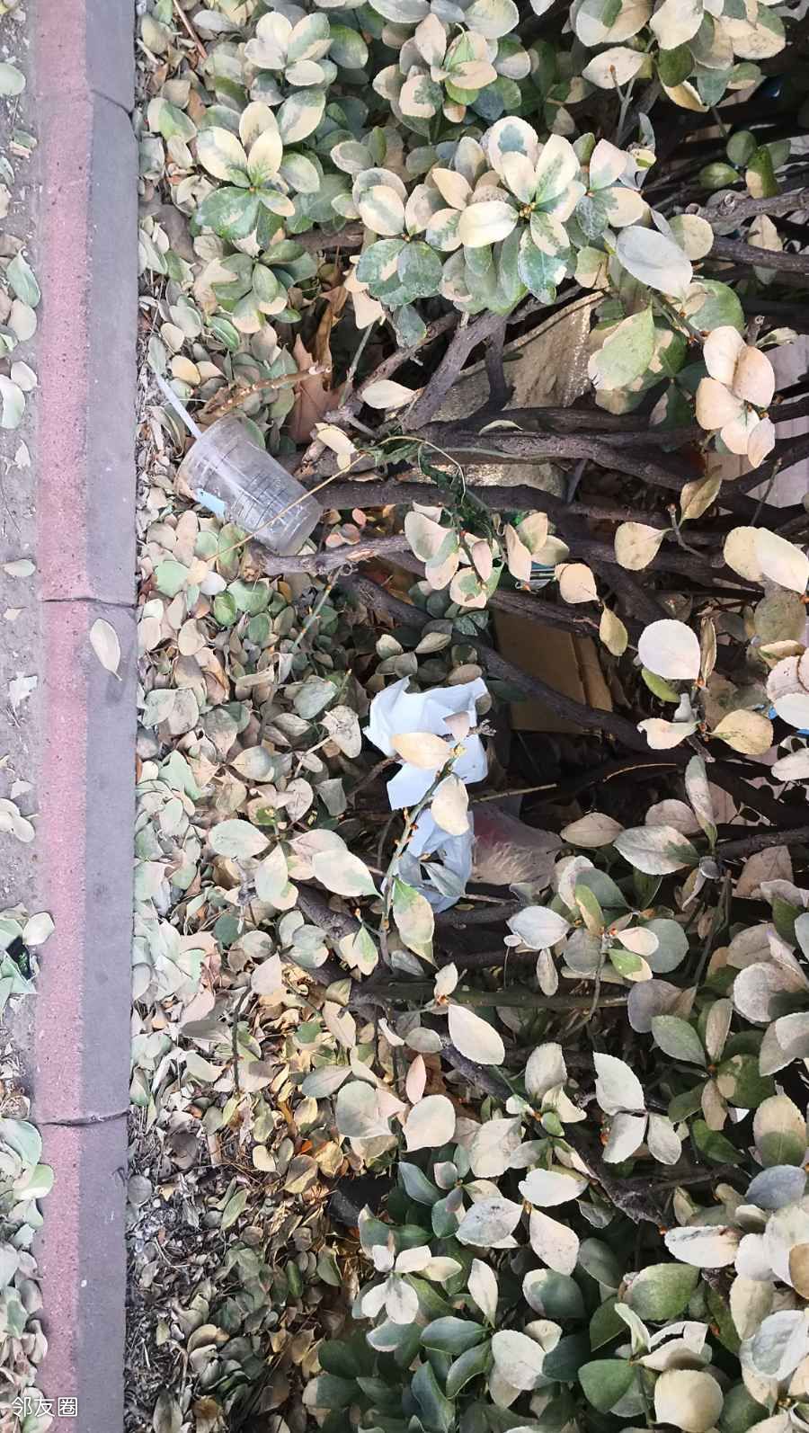 强烈谴责乱丢垃圾的人!更希望有关部门能切实负起责任来,及时清理街头绿化带里的垃圾。