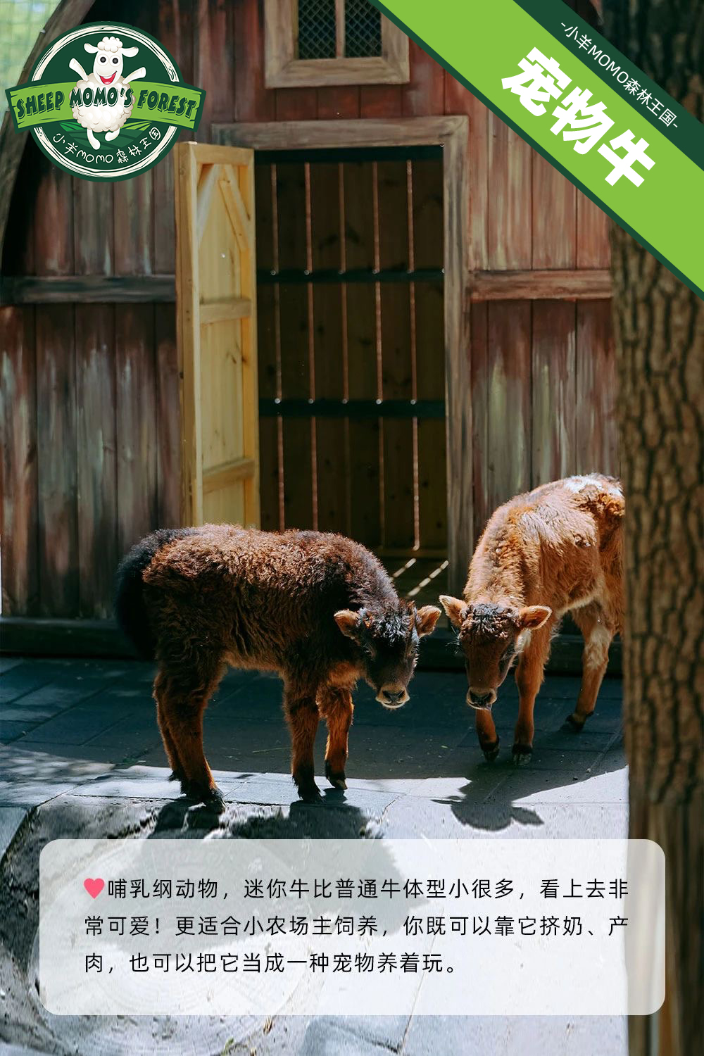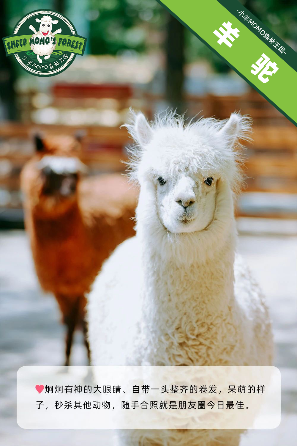 羊驼、蓝孔雀、白孔雀、鹦鹉、迷你兔、长毛兔、鹿、绵羊、宠物驴、细尾獴、土拨鼠、浣熊、松鼠、波尔山羊、青山羊、绿头鸭、小香猪、宠物牛。