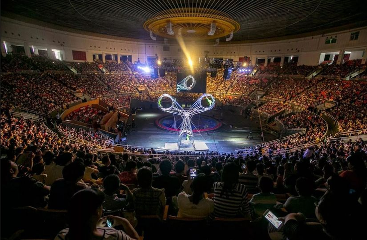 大型马戏中的经典节目之一,就是令人心跳加速的高空大飞轮表演。大飞轮依靠演员自身的重力和技巧实现高速旋转,要求演员们拥有高超的技术和默契程度。在表演中,飞轮大转盘以惊人的2.07秒一圈的高速旋转,在高度达到12米、直径2米的飞轮内外完成各种惊险动作。他们可能会进行高空翻转、飞身跳跃、空中倒立等极具挑战性的动作,每一次表演都是对技术和勇气的极大考验。