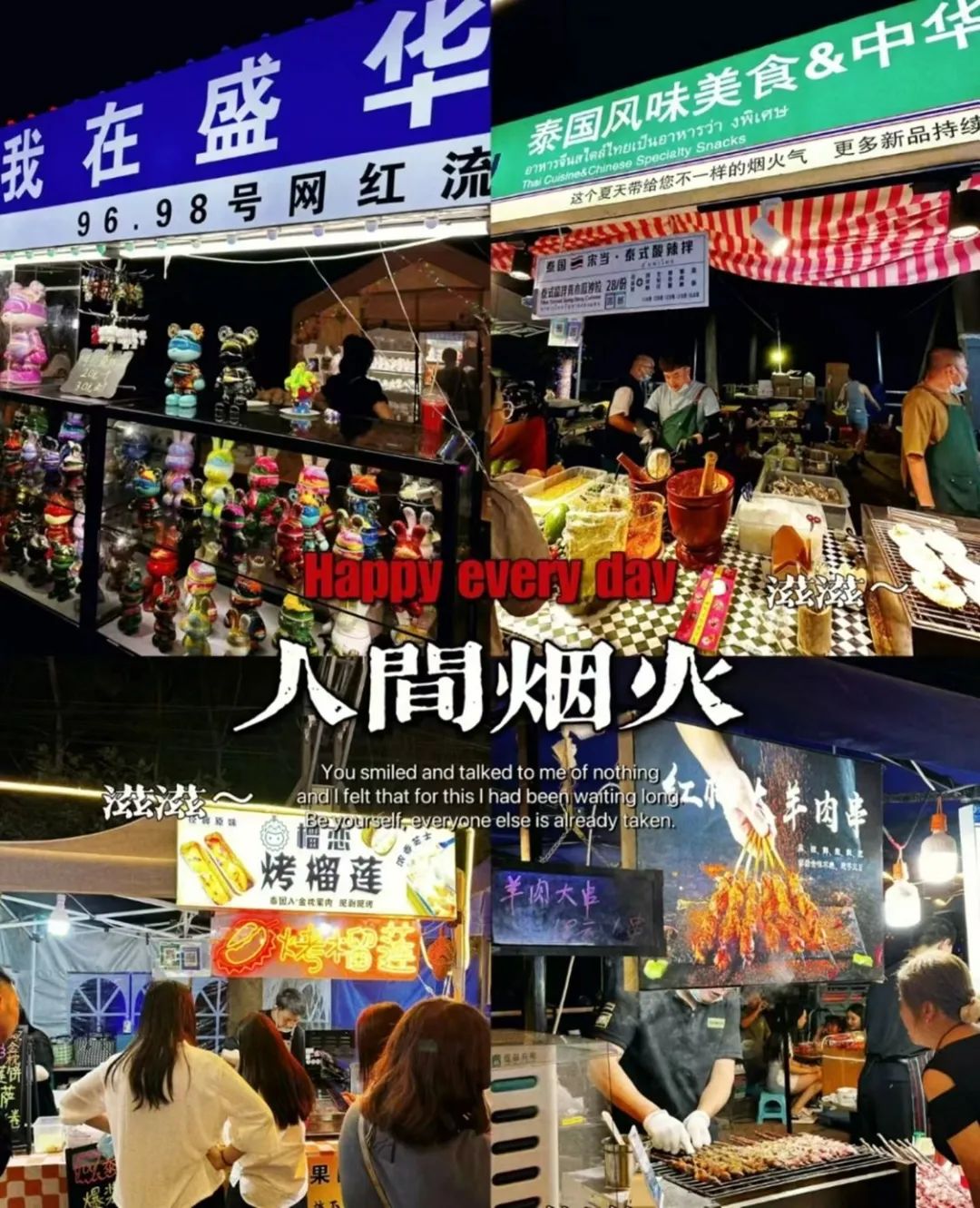 每周三-周日下午5点之后营业这里有200余家摊位,