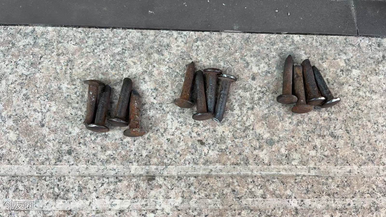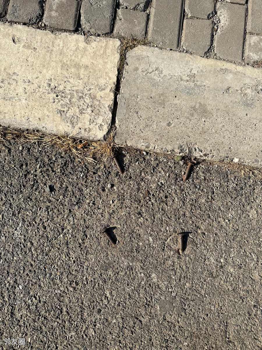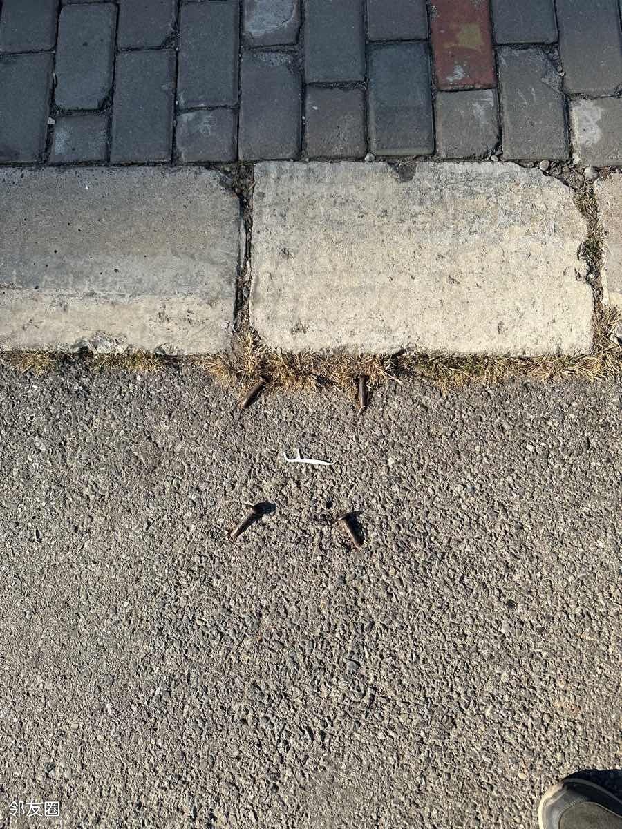 南湖中园二条爱车中心马路上12颗钉子伤人