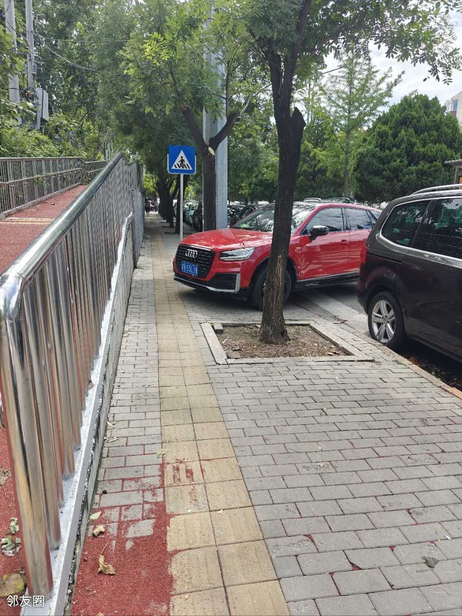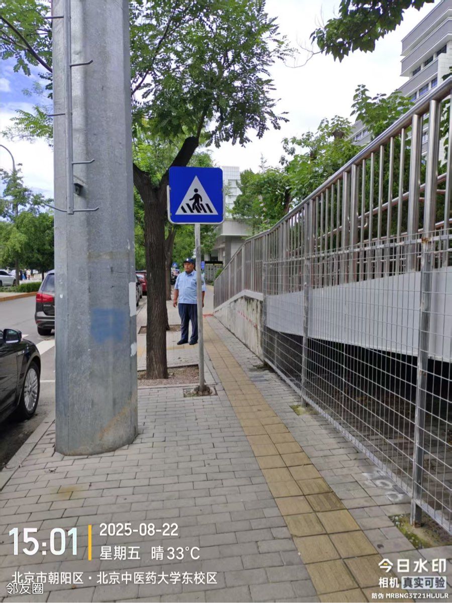 望京中医药大学门口人行横道,就这么随性,就这么随意,不仅压着人行横道,挡着出口,还压着盲道,赶紧来人贴条吧,不罚款,不会长记性!!!