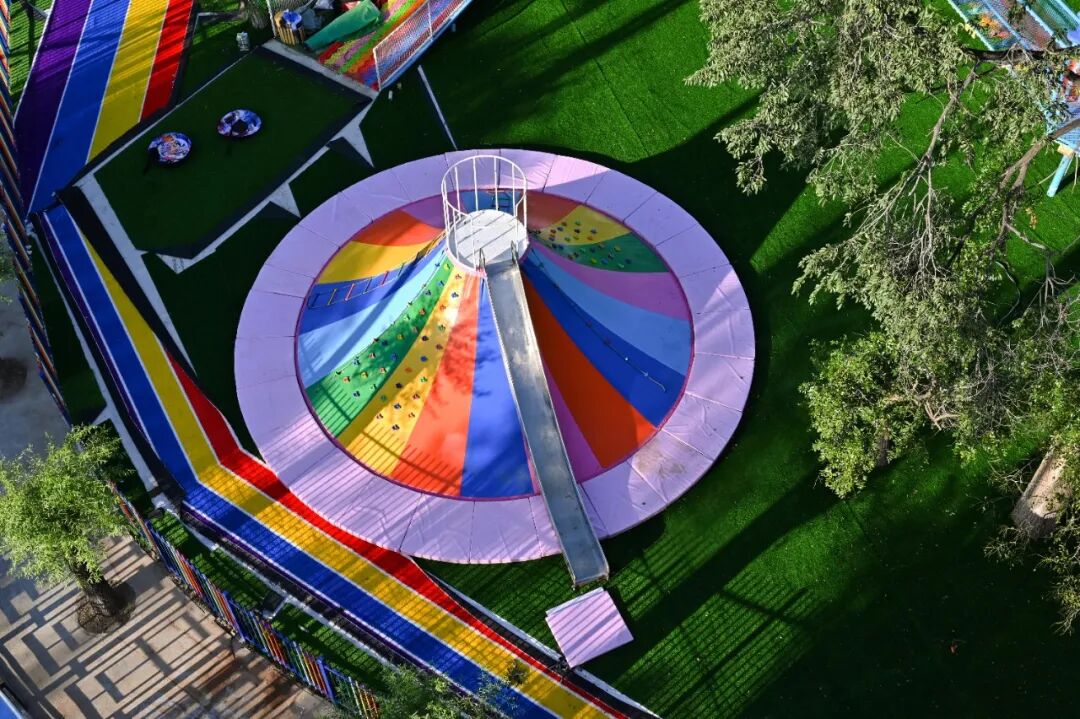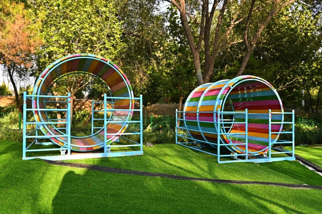 魔幻城堡、彩虹滑道、勇攀高峰、彩虹滑梯、六角魔网、弹乐迷宫、丛林穿越、勇往直前、小火山攀岩、M秋千、龙绳秋千、三叉月亮秋千、小猪快跑、儿童滑索、无动力海盗船、水母蹦床、转转地球仪、吊座秋千、原地滚筒、弹簧马、表情包、有轨旋转自行车、熊猫蹦蹦云、蝴蝶秋千、网红树23个无动力项目畅玩(开放项目以现场为准,大小同价,家长必须陪同入园)