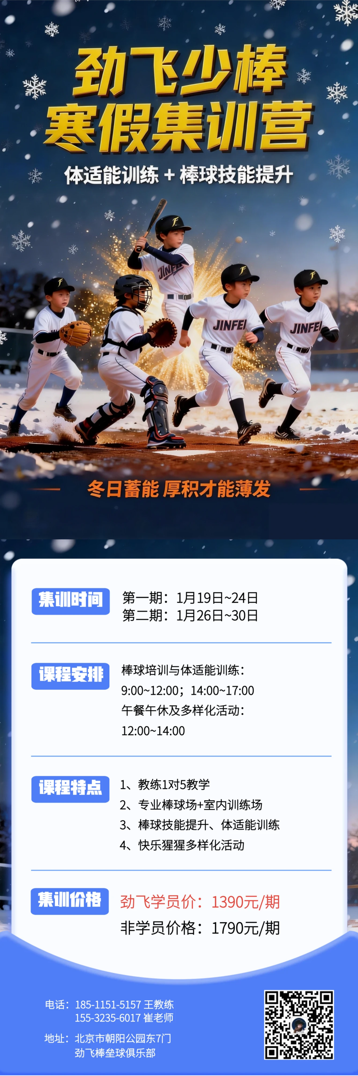 【活动内容】0元体验劲飞少儿棒球体验课课程1节;寒假集训营同步招生中