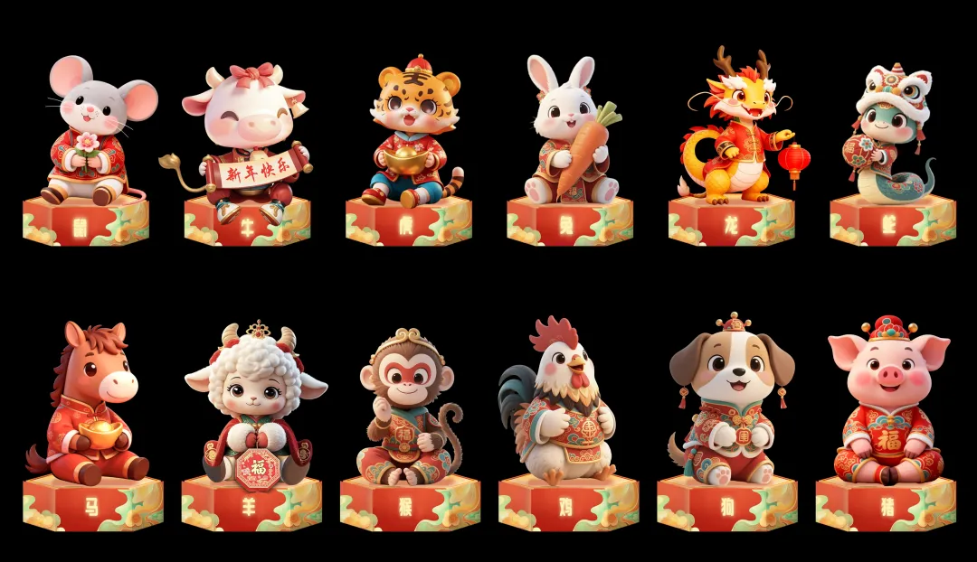充满温暖氛围,十二生肖兽首灯组汇聚祈愿树周边,“冰湖福至”灯组传递“五福临门”寓意,寄托新春祝福。