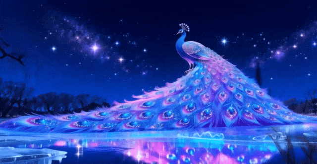 仰望“雀舞升平”的巨型孔雀光屏