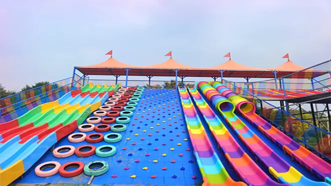 彩虹滑世界组合:大型彩虹滑道、滑梯、爬坡、滚塑滑梯、轮胎坡等当天不限次畅玩