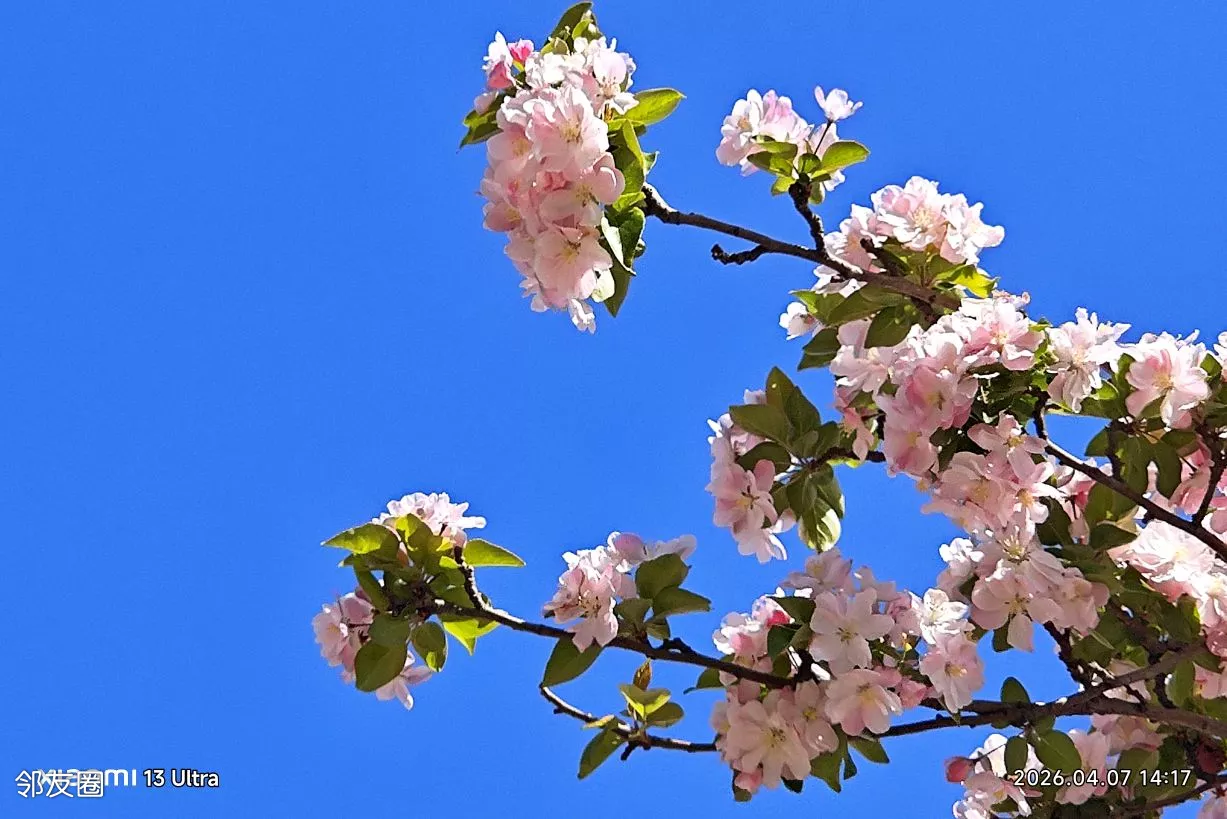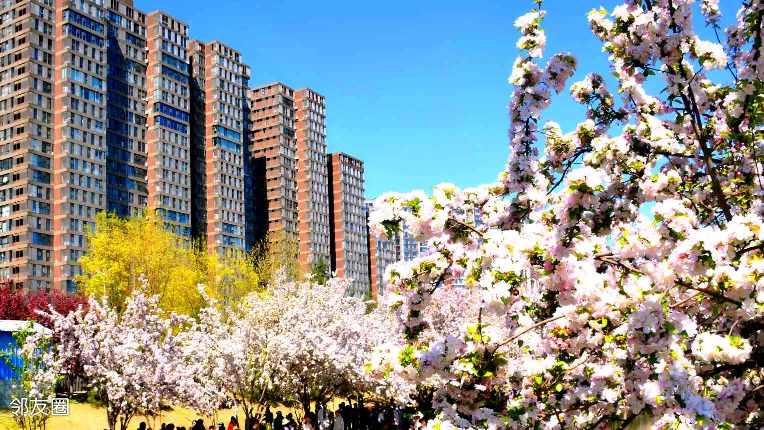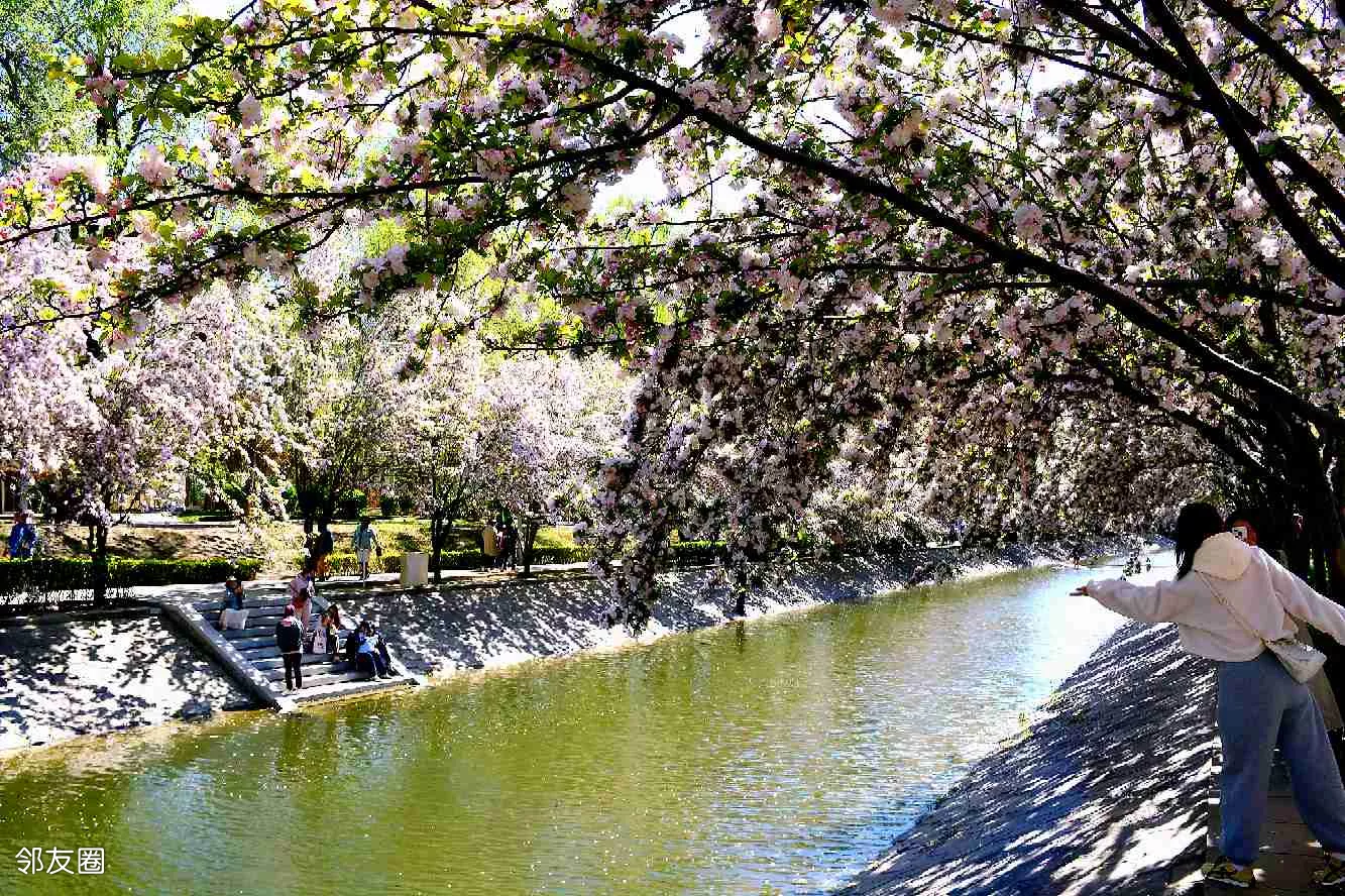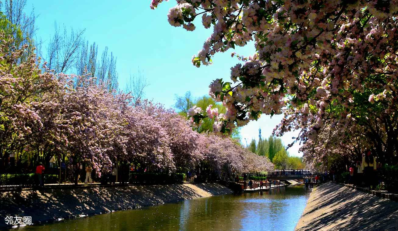 最美四月天,北京海棠花进入盛花期。海棠花正在美丽绽放。其中望京海棠花溪树更大花更密,更有大气豪放之势!步步是美景!