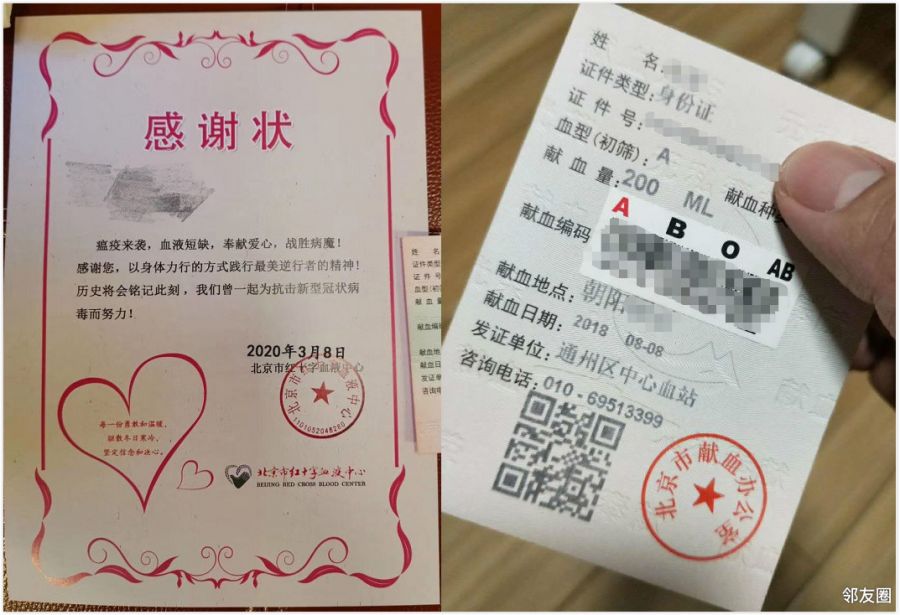 北京市无偿献血证 参考下方图片