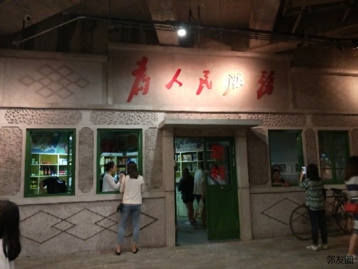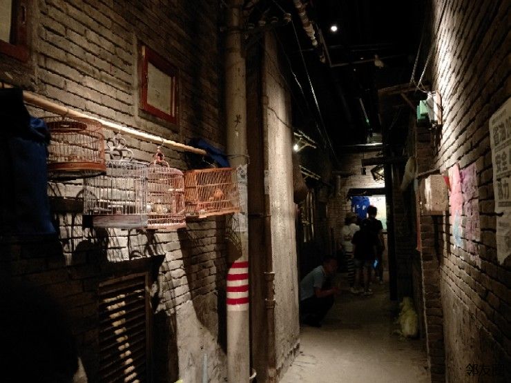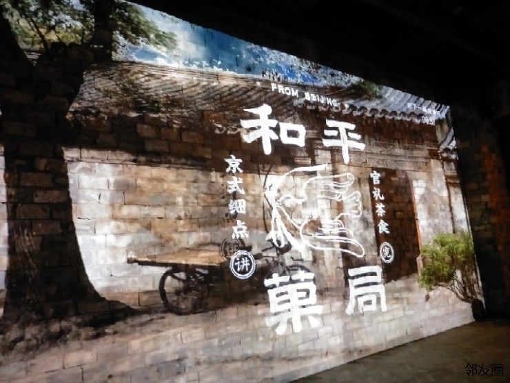最近,王府井百货大楼里出现了一座“老北京城”,这个由京菜“局气”创始人韩桐打造的“和平菓局”,浓浓的年代感扑面而来。大青砖窄胡同儿、蜂窝煤、小马扎、绿皮火车、大戏院、照相馆还有上世纪的广告画……2400平方米的沉浸式体验空间,还原出鲜活真实的老北京生活,开出不久就成了王府井大街上的最热门“打卡地”。从王府井百货大楼下到地下二层,就像进入了一个时空隧道,煤厂胡同带你穿越回上世纪80年代:那时候住在很深的胡同里,通讯还不像今天这样发达,家家户户门口都有信报箱,鸟笼在墙上挂了一排,鸟儿在里面叽叽喳喳。奶奶那时爱养花,花盆和大白菜整齐地放在窗台下,旁边停着一辆家里唯一的二八自行车。再往前走,胡同里晾衣绳上挂着两三件衣服,墙根儿底下晾晒着的白球鞋,拐角处下了一半的象棋、小马扎,墙上贴着居委会通知书、警示语、宣传标语,还原了最朴实无华的老北京市井生活。