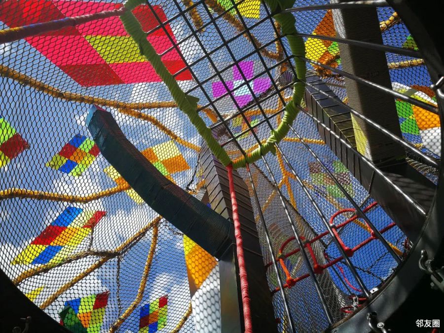 伴着绳子的错综复杂与阳光映照下的一片荷叶,它期待着你活蹦乱跳的来回穿越。