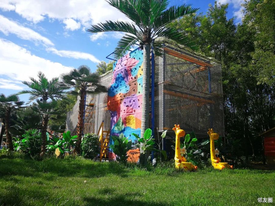 像一个丛林中无忧无虑的小精灵一样,欢快的爬上丛林深处隐藏的城堡,顺着滑梯搜的一下欢快的滑下来,尽情享受蓝天绿树和大自然独有的清新空气。