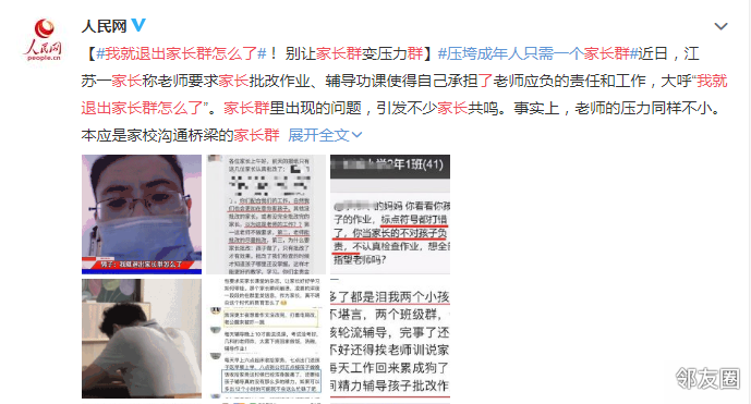 近日,江苏一家长在自己发布的短视频中大呼:“我就退出家长群怎么了”引发了热议。从视频内容来看,这位家长认为,老师要求家长批改作业、辅导功课,使得自己承担了老师应负的责任和工作。