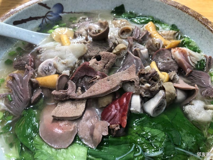 石景山鲁谷永辉超市小吃街,北京唯一能吃到福建捞化的小店,捞化是福建省福州市的一道著名小吃,属于闽菜系,该菜品享誉中外。捞化其实应该叫捞米粉。米粉使用原产莆田的兴化米粉,质地细,一捞就熟。用高汤淋上,加上高汤、猪血、大肠、牛肚、百叶和葱花即可,故俗称“捞兴化”,后顺口简称“捞化”。一份捞化,一份鱼丸汤共计43元。