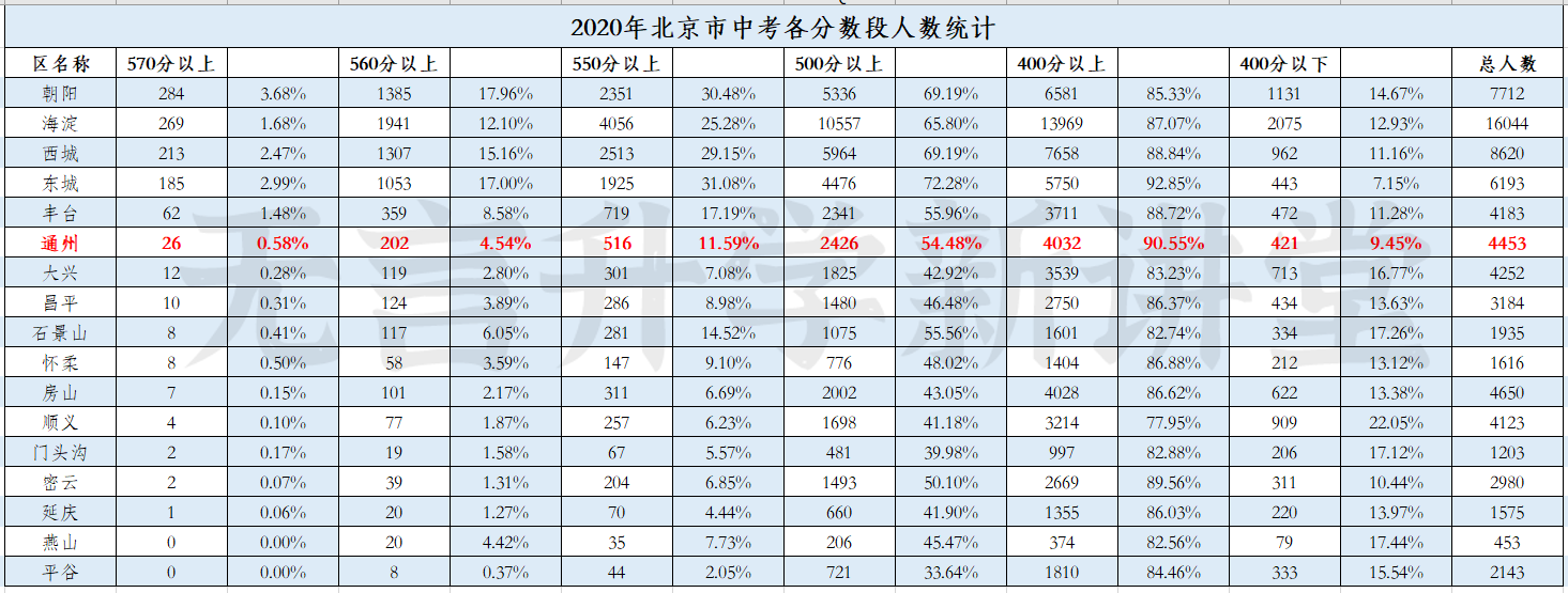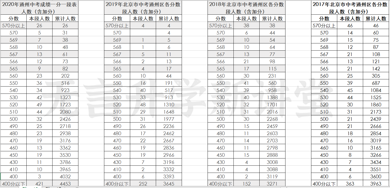 下面是近4年通州中考的一分一段表,基本上波动不大: