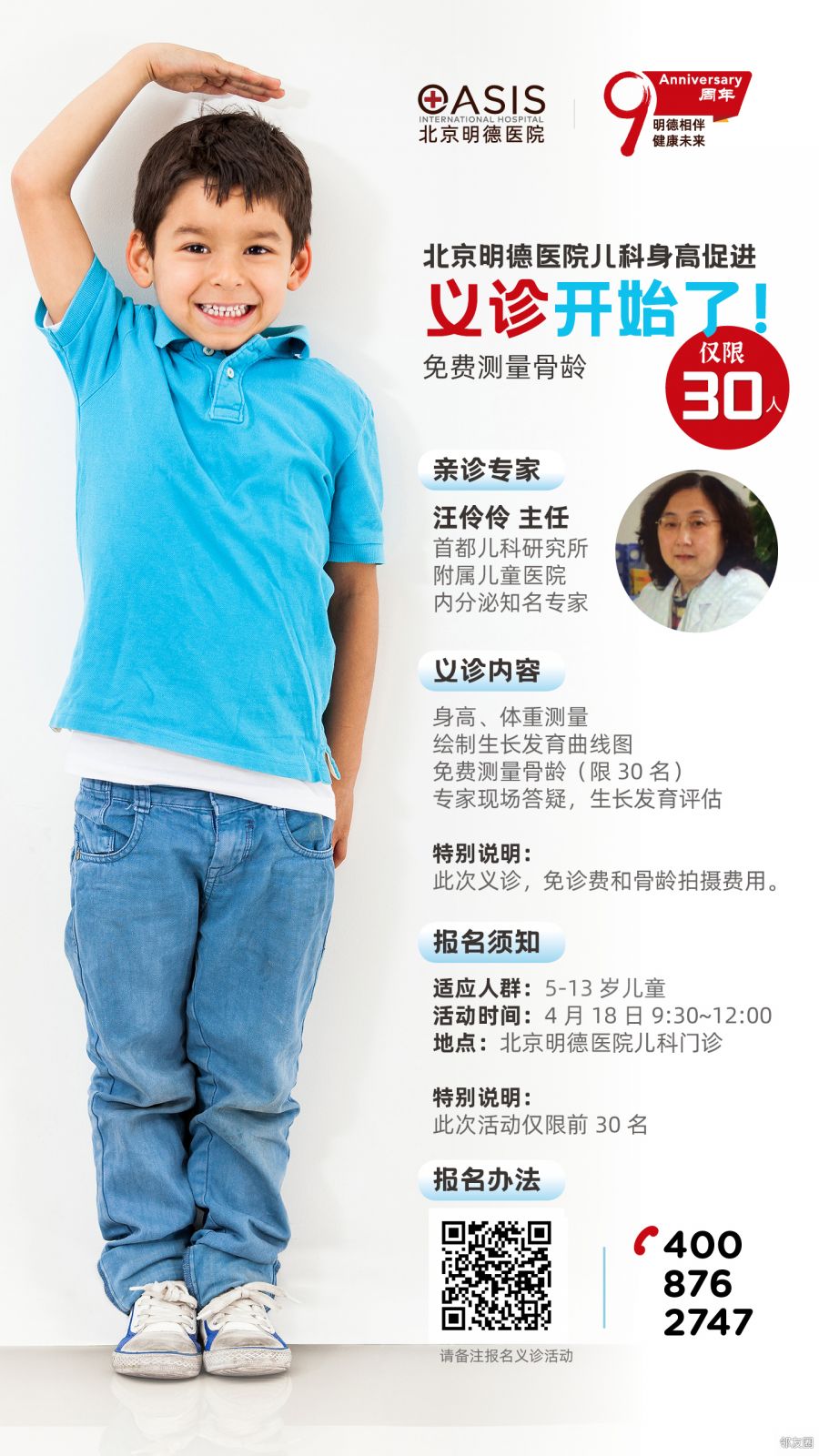 【特别说明】:此次义诊,免诊费和骨龄拍摄费用。