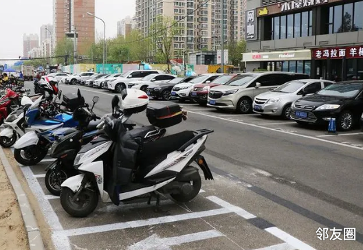 解题:划定机动车与非机动车停放区域,优化交通流线