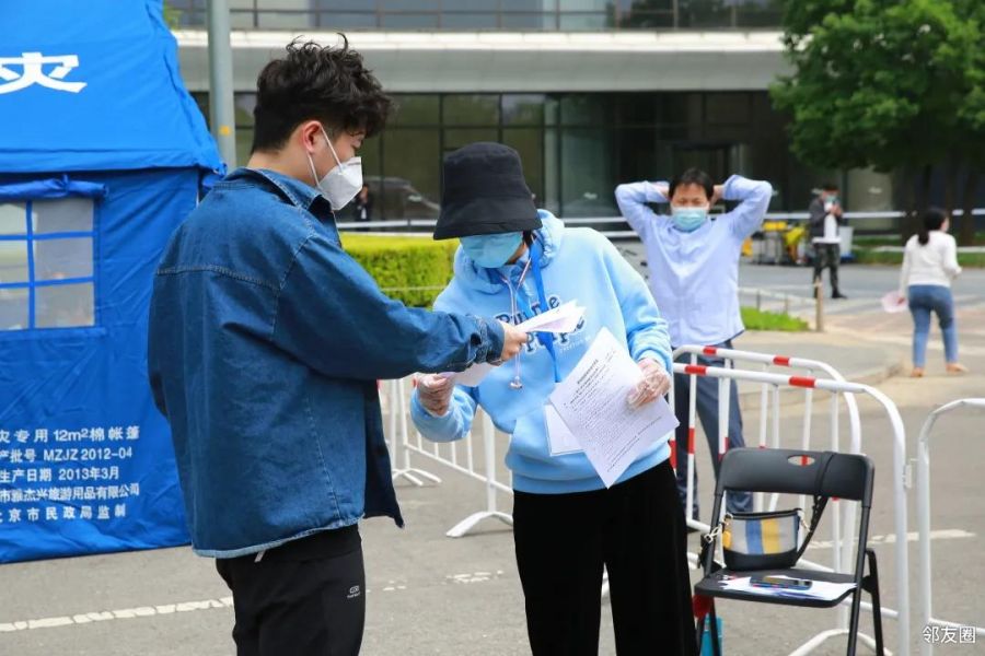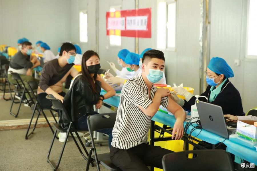在望京SOHO塔三前街,每位员工凭身份证进入疫苗接种现场。现场科学划分各功能区域,街道疫苗接种志愿者、物业安保人员在现场进行引导,整个接种过程井然有序。