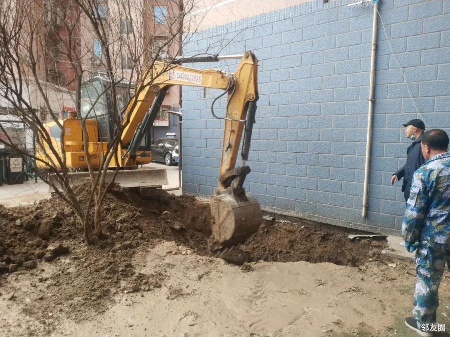 为尽快解决居民的日常用水需求,物业立刻提供应急用水。同时,社区工作人员同物业一起到现场进行实地查看。由于二次供水管道多处漏水,需要挖开地面找出漏水点,但此次维修需要该小区产权单位的审批及维修经费。社区立即联系物业负责人以及产权单位相关负责人就停水问题召开紧急会议。经过三方研究讨论,确定最终方案:由物业联系专业维修人员,查看现场确定问题后,先将漏水问题处理完毕,后进行维修经费的清算及审批。由于社区地面出现多处漏水,专业维修队伍无法准确找到漏水点,需要社区内的管道分布图,但因时间久远已无法从档案馆找到图纸,而居民用水迫在眉睫。经社区再三协调,施工队同意尽快动工,在冒水处开始挖地,逐步找到漏水点,并以最快速度将3处漏水点损坏管道修复完毕,在最短时间内让社区的3、4号楼恢复正常用水。