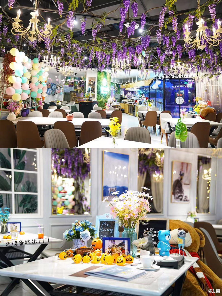 浣熊先生西餐厅仿佛是北欧紫藤花乡