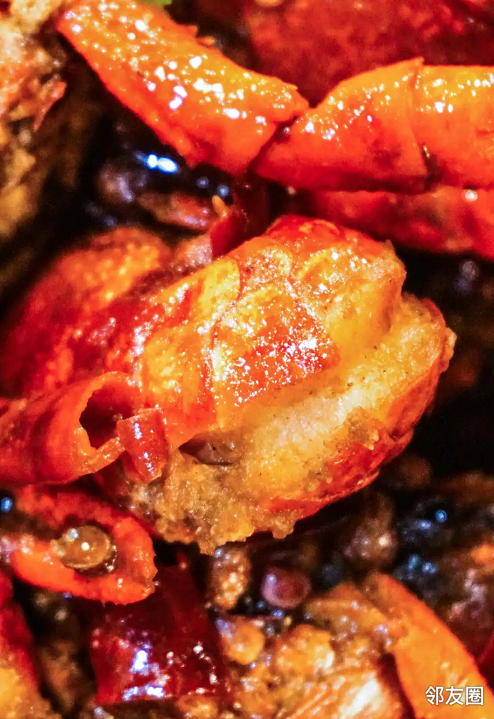 酱汁浓郁,虾肉入味,再蘸点锅内的辣油