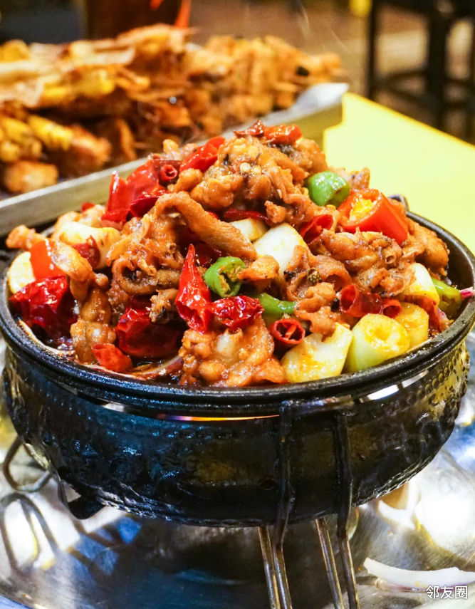 但是这道干锅牛蛙吃起来一点也不逊色。