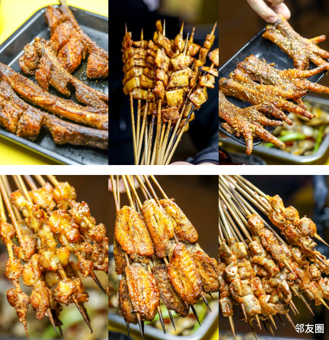 羊肉串、心管、Q弹板筋、鸡脆骨、馒头片等...