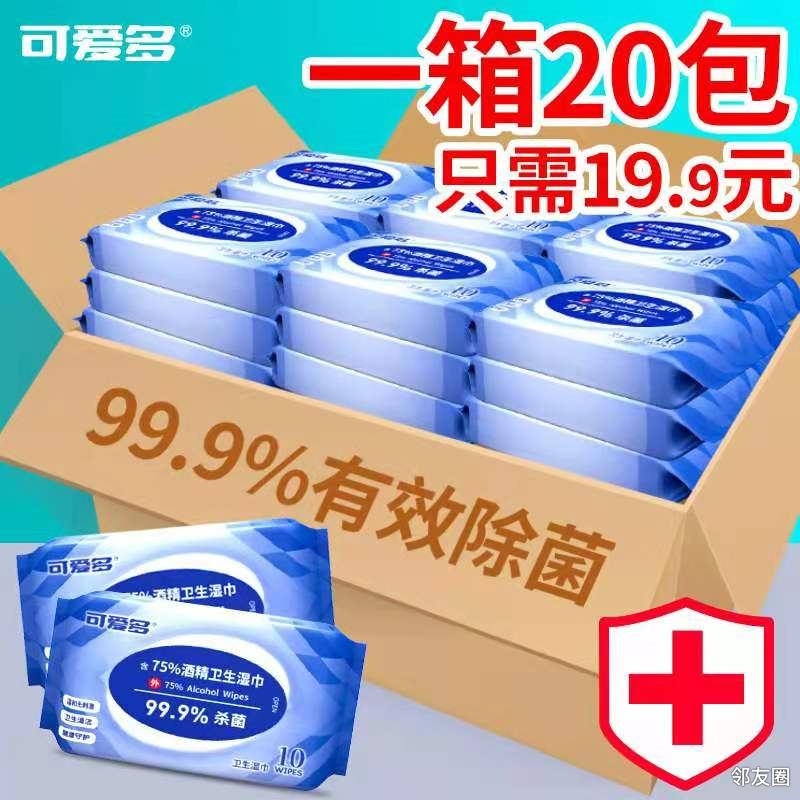可爱多75%酒精消毒湿巾小包便携20包只要19.9!