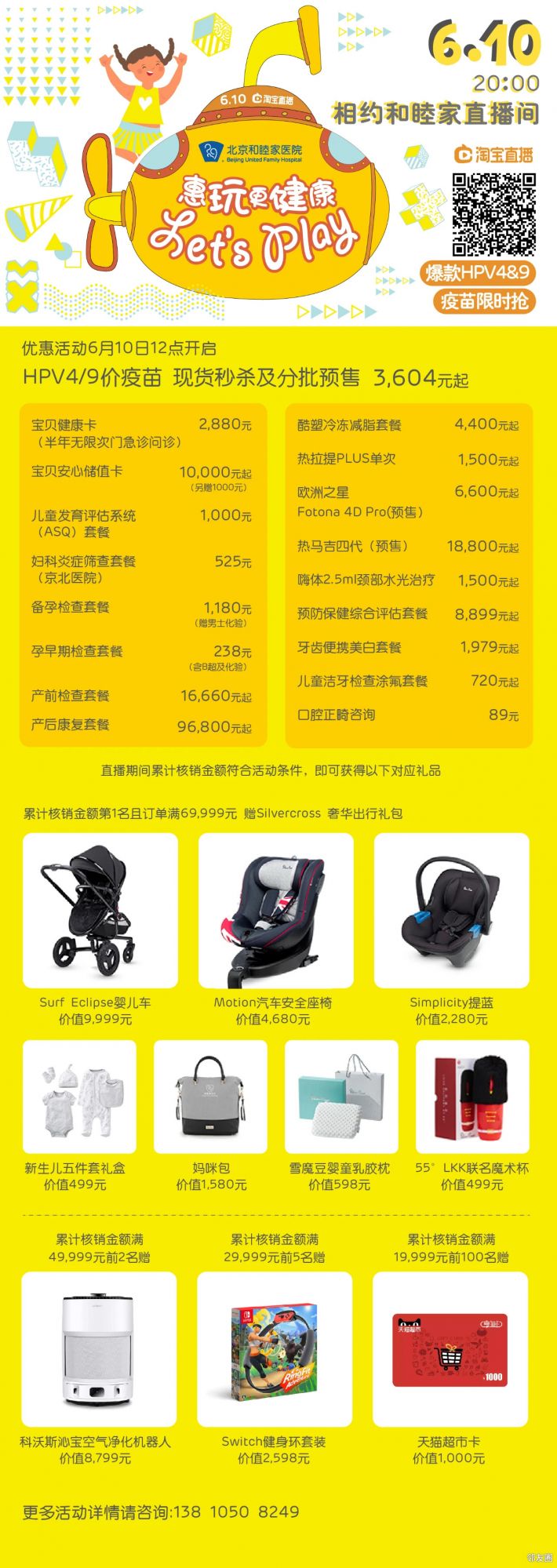 和睦家医院最新消息!HPV疫苗限量抢、10万天猫超市卡和欢乐谷游玩年卡免费送!