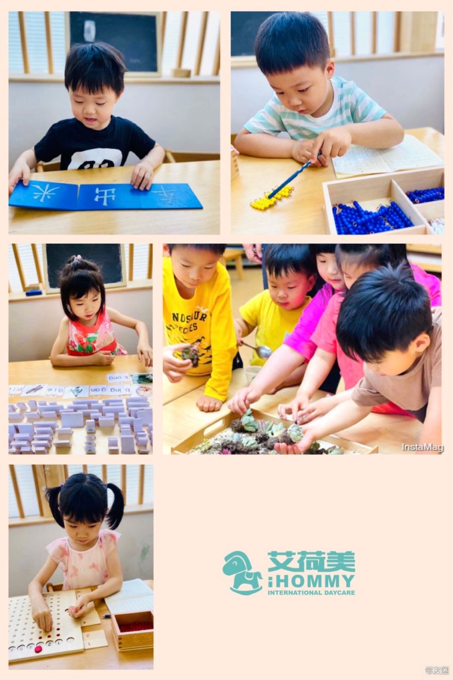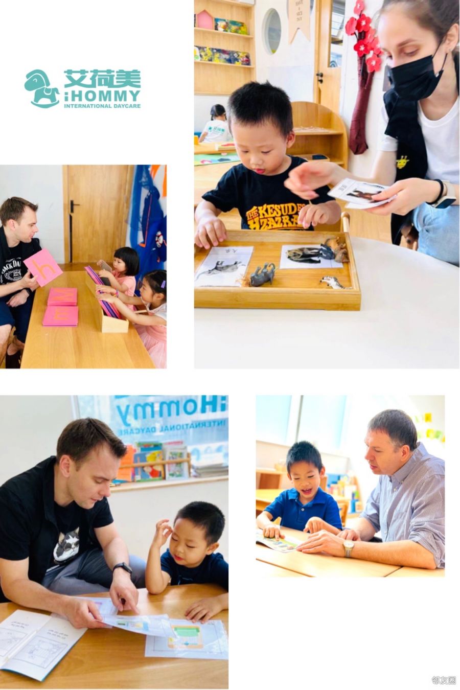 浸润式英文环境,结合蒙特梭利教育理念,融入中国传统文化,从语言,社交,思维,艺术,运动五个维度结合敏感期的特点给予全方位的关注和引导。同时根据美国RIE婴幼儿护理理念和中国家庭实际状况,通过多年实践研发适合中国家庭的iHommy REC®(Respect&Educate&Care)保育、教育体系,尊重孩子的自然发展。
