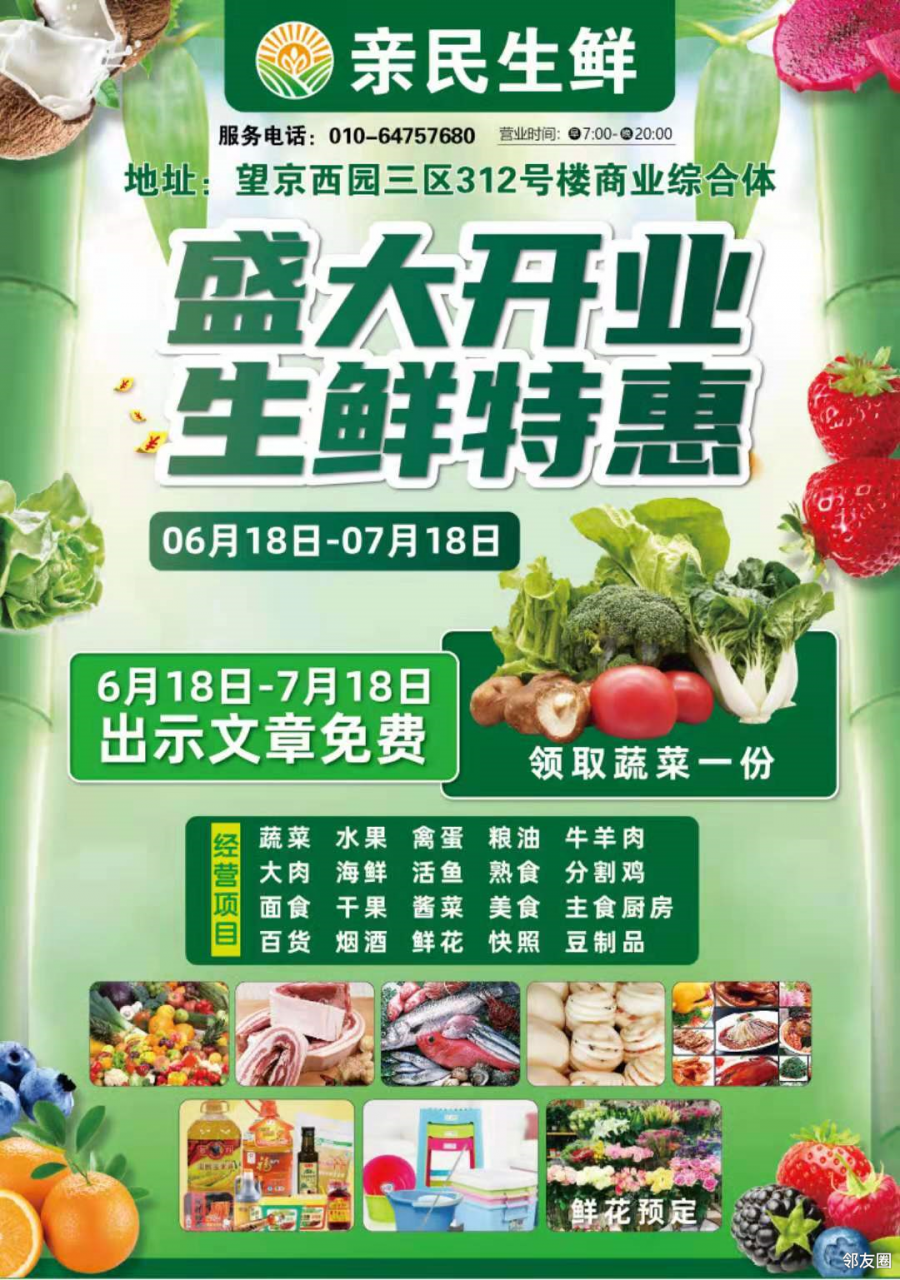 活动详情:一、亲民生鲜营业时间:早7:00-晚20:00