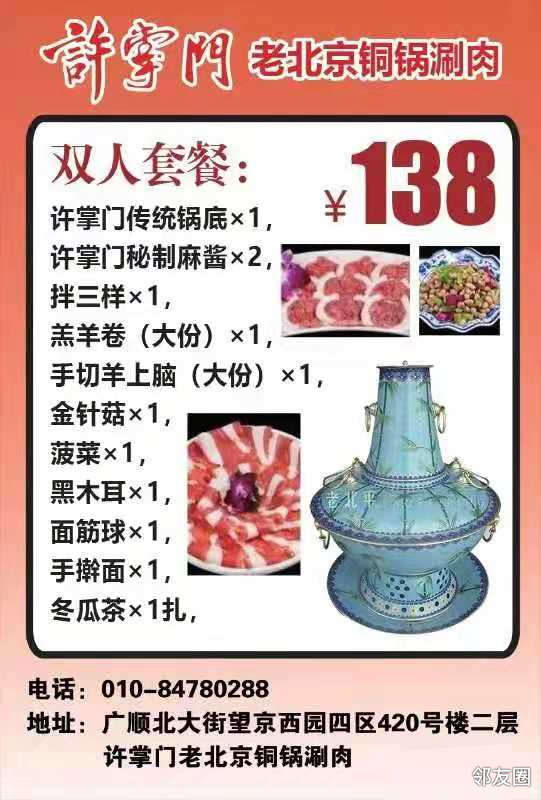 参与须知:活动期间,凭望京网微信或邻友圈APP的活动页面到指定商家即可享受优惠,9个商家活动可同享,具体参与规则请以商家活动内容为准;