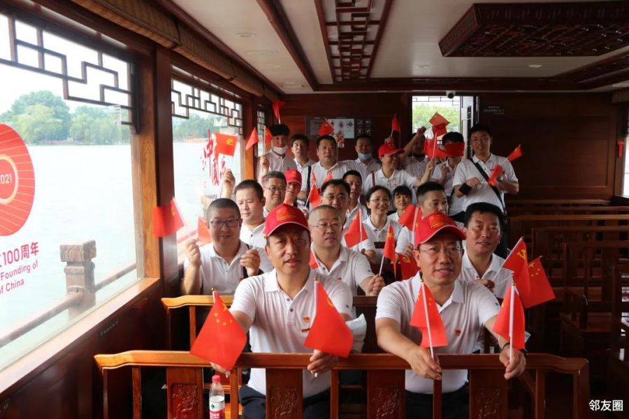 一百年前,中国共产党第一次全国代表大会在南湖的一艘画舫上完成了最后的议程,庄严宣告中国共产党成立,南湖从此成为党的诞生地。参观中,大家沿着当年中共一大代表走过的行程,进行“重走一大路”体验活动。通过瞻仰红船、忆初心,观看视频、树初心,听讲党课、话初心,参观展览、寻初心,重温宣誓、守初心,亮明承诺、表初心等环节,重温了中国共产党百年光辉历程,特别是中国共产党创建、一大南湖会议的历史。