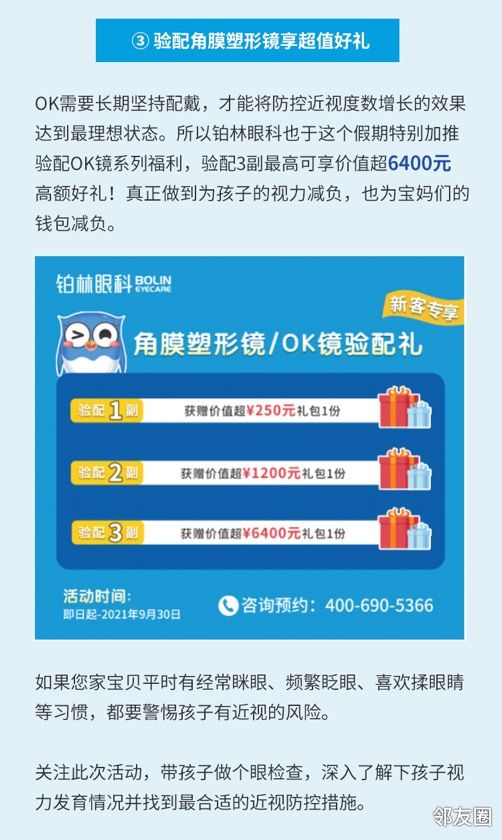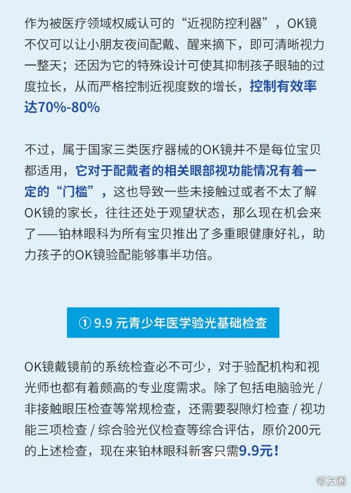 2、9.9元享原价200元的青少年医学验光基础检查(仅限铂林眼科新客)