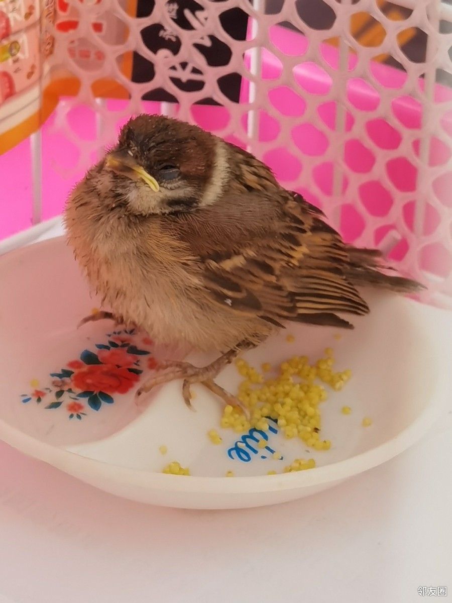 我家捡了小麻雀,还不会飞,每天我们一家三口按时给喂吃的,还挺好,准备壮实了去放飞,结果爷爷来了,去看了两眼,然后就没有然后了,麻雀这气性