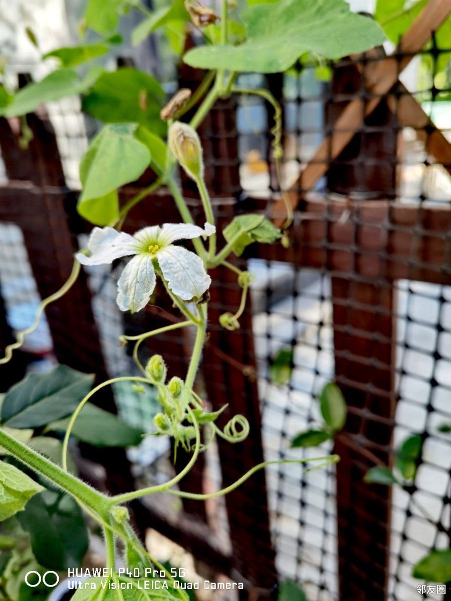 春天就种下一棵小苗,没想到阳光和雨露的威力这么大!小苗生长迅速,很快一棵葫芦藤漫无边际的到处乱爬,肆无忌惮的开着白色的花朵,而且轻而易举的孕育出许多小葫芦来。