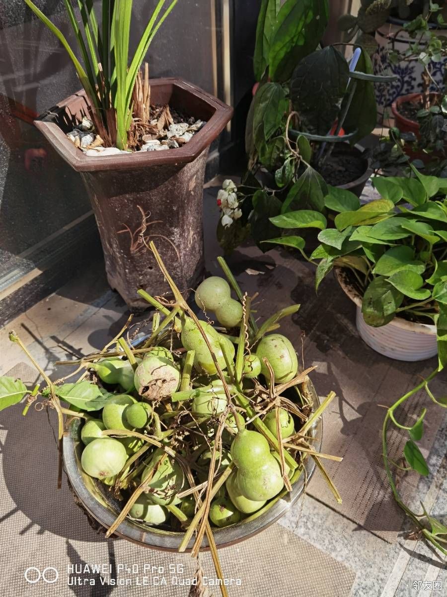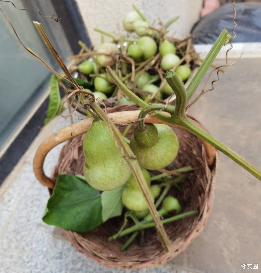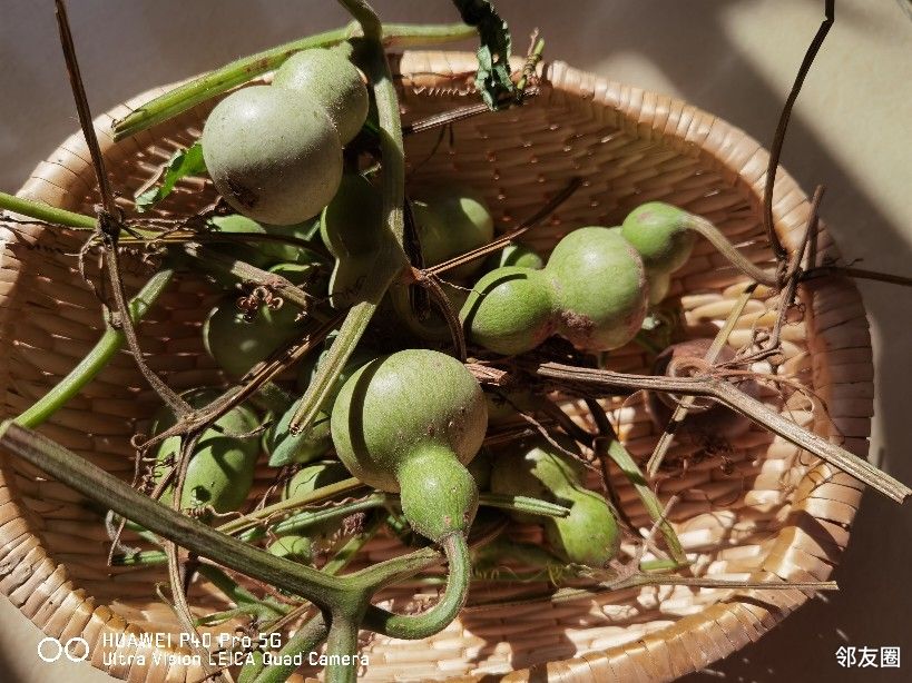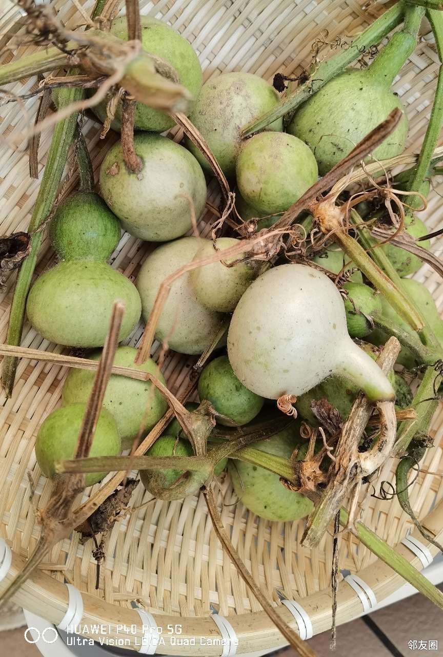 得嘞,拉秧吧,把小葫芦们都请下来,晒一晒。据说要让这些小葫芦变成漂亮的葫芦娃要经过晾晒、咔嚓皮、水煮、砂纸磨等工序,挺麻烦的。唉!看来干什么事情也不容易呀!