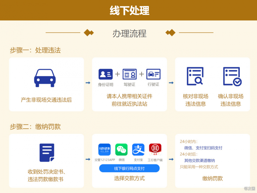 线下处理:请本人携带相关证件前往就近执法站。(携带:身份证+驾驶证+行驶证)消分的地点一般叫:**交通大队执法站,或者**交通支队执法站。