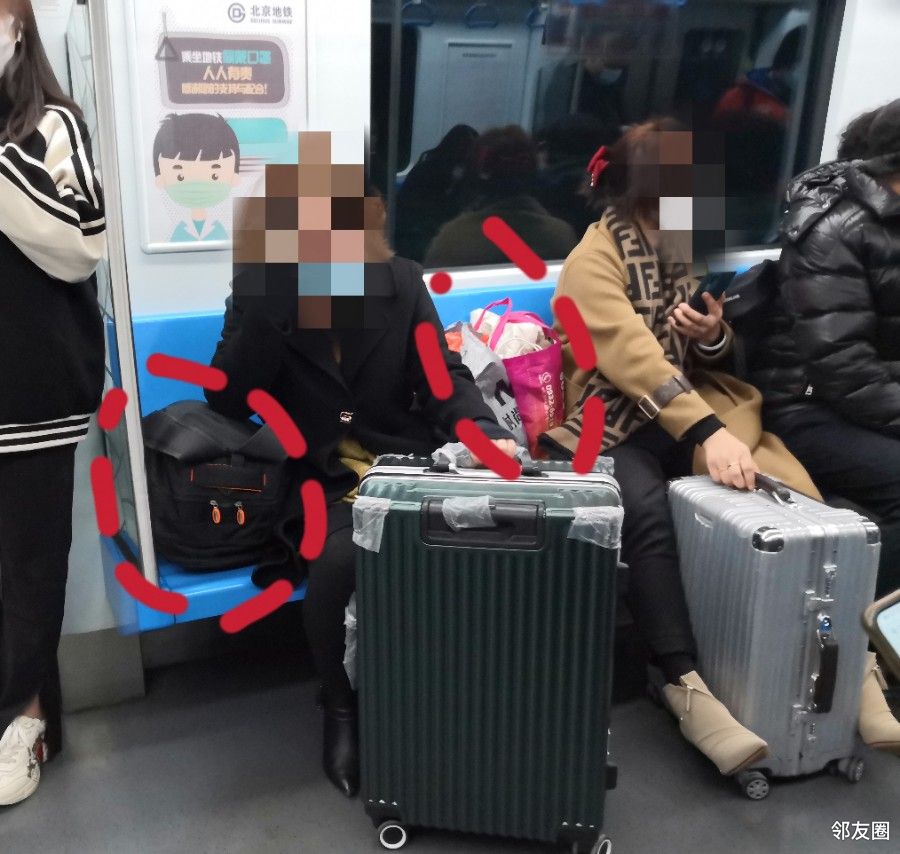 地铁上人那么多,包还占了两个座位,哎。咋想的?